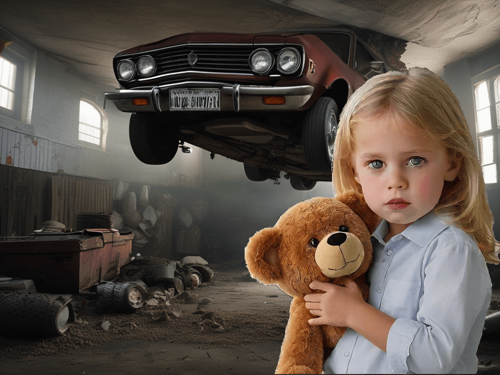 “Dianne!” Sharon’s voice was shrill with panic as the car’s metal frame landed mere inches from where their daughter stood. The force of the collision sent a shockwave through the floor, knocking Dianne off her feet. The little girl screamed, her voice lost in the din of the storm.