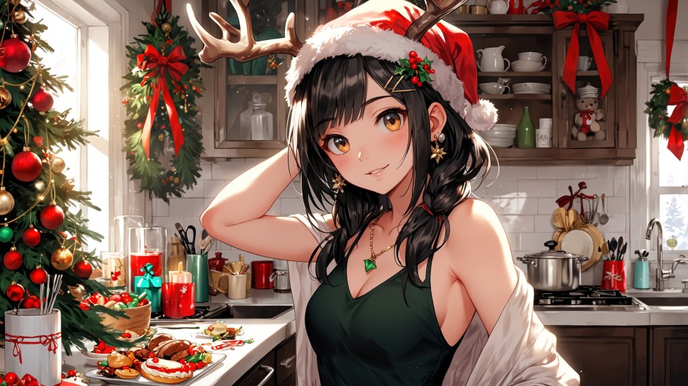 “Of course I am!” Sol responded with a grin, her reindeer antlers wobbling as she reached to pin the last strand in place. “You can never have too many lights, Em! It’s Christmas!”