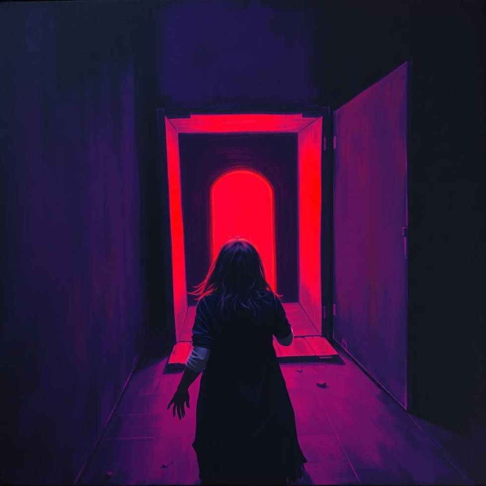 As she snapped the photo, the lights in her apartment flickered momentarily. When she looked at the image, the figure was unmistakably clearer. It stood in the corner, slouched and emaciated, its head hanging as if its neck couldn’t bear the weight. Its eyes glowed a deep, unnerving red—like coals smoldering in a long-extinguished fire. This can’t be real, she thought, her pulse quickening as she compared the photo to the two others she had already taken.